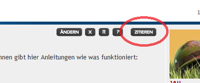 Wenn man das vermeiden und nicht den ganzen Beitrag zitieren möchte kann man auch einen Abschnitt markieren und dann den Knopf drücken. Dann wird nur der gewünschte Text (mit passender Syntax) im Editorfeld eingefügt.