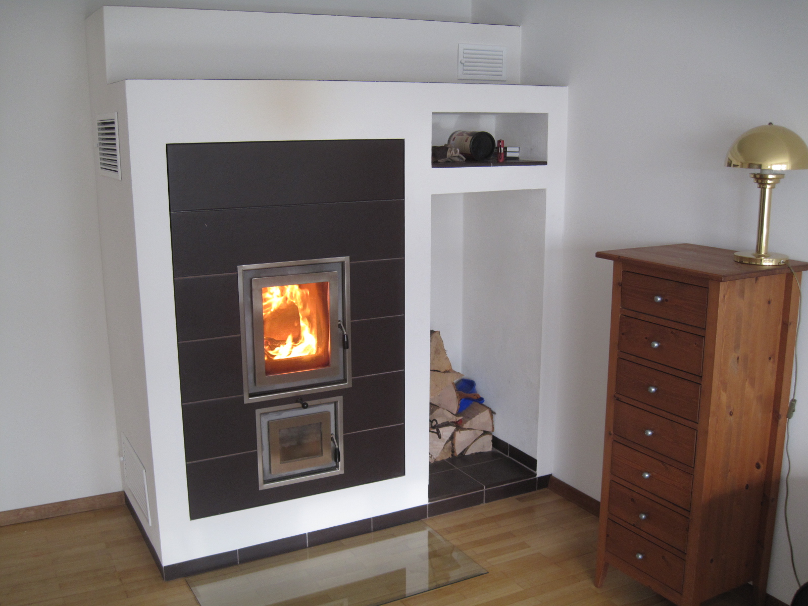 Schlußendlich haben wir die mindestens die gleiche Summe, die uns Ofen und Einbau/Anschluß kosteten, nochmal in Kamin und Ofen"verpackung" gesteckt...