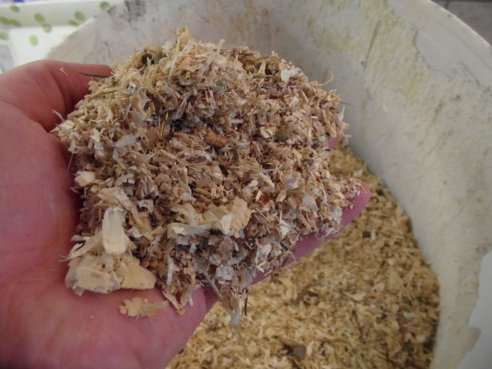 Getrocknete Holzspäne vom letzten Sägemarathon oder Kleintierstreu bereit halten