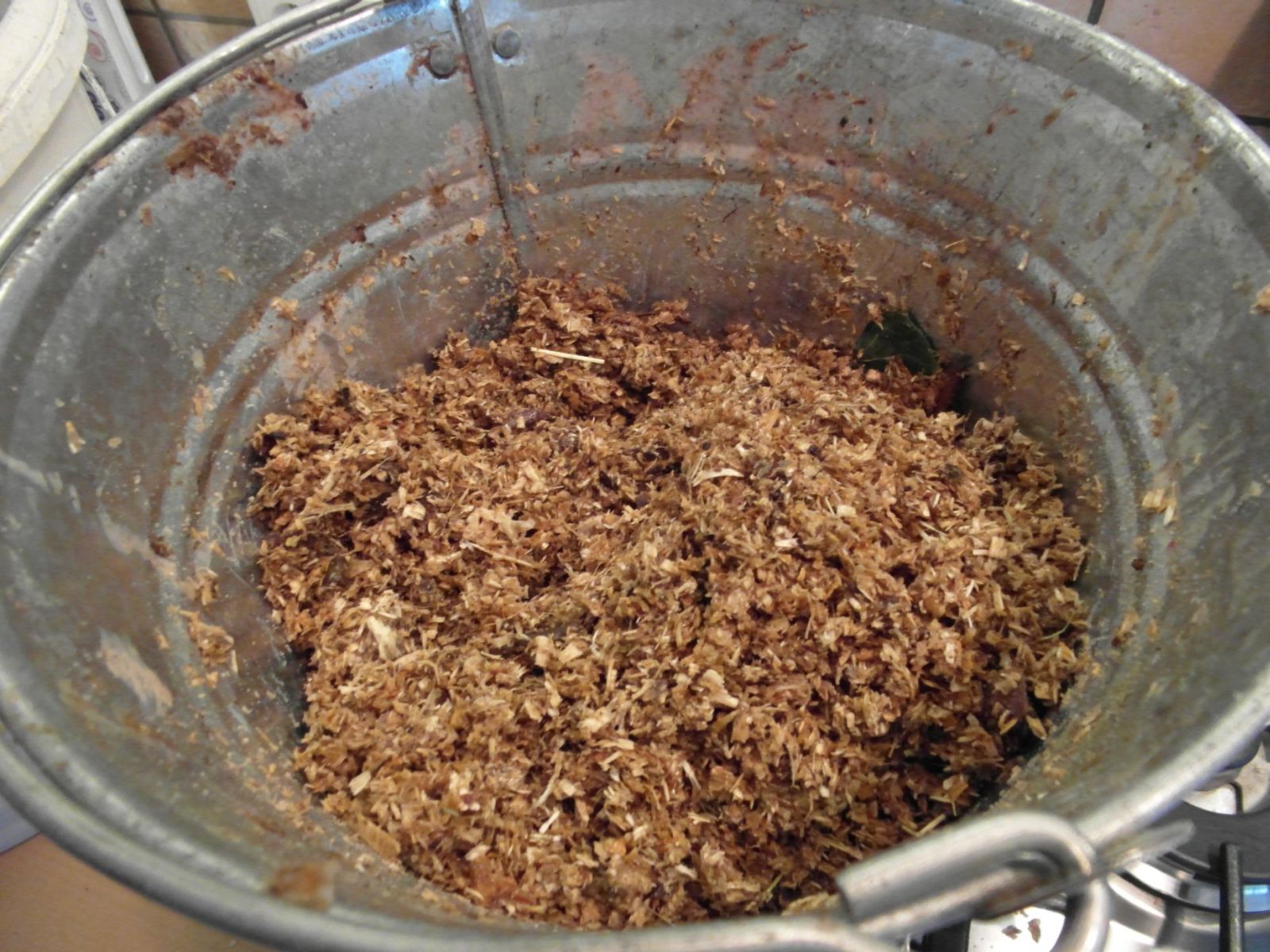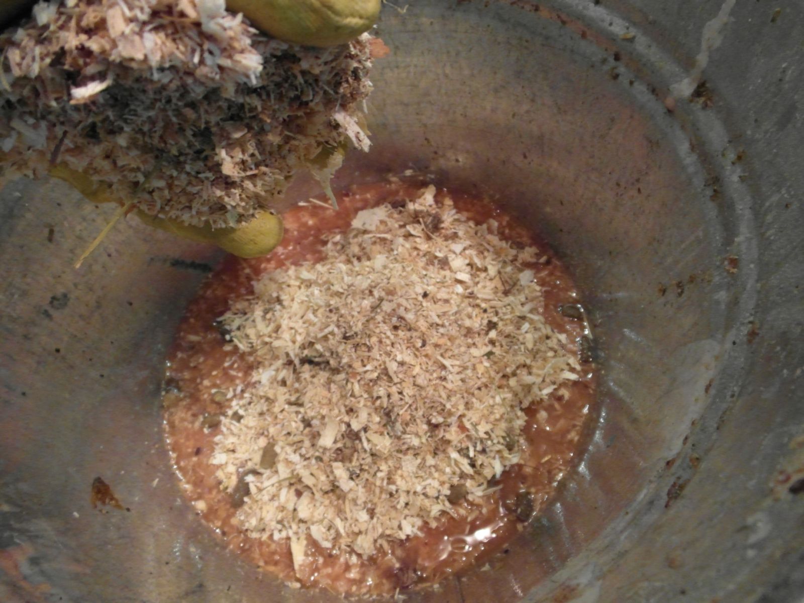 So lange Späne hinzufügen und umrühren, bis am Boden des Blecheimers kein flüssiger Wachs mehr ist