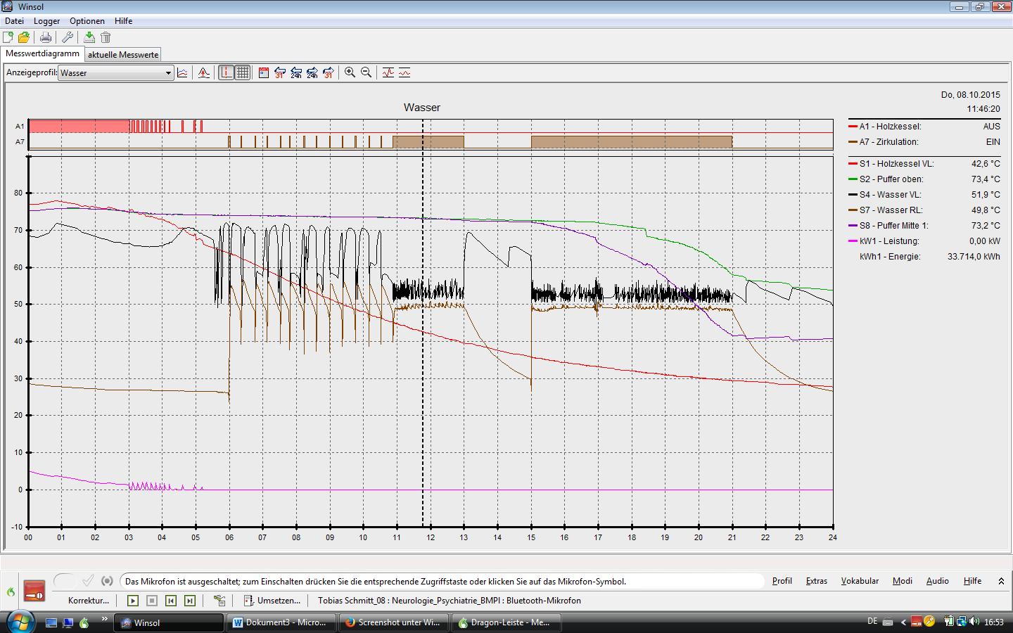 sie ist tatsächlich nur kurz an. Habe das an verschiedenen Tage zu unterschiedlichen Zeiten, unabhängig vom Walltherm-Betrieb beobachtet. Hat jemand einen Tip?
