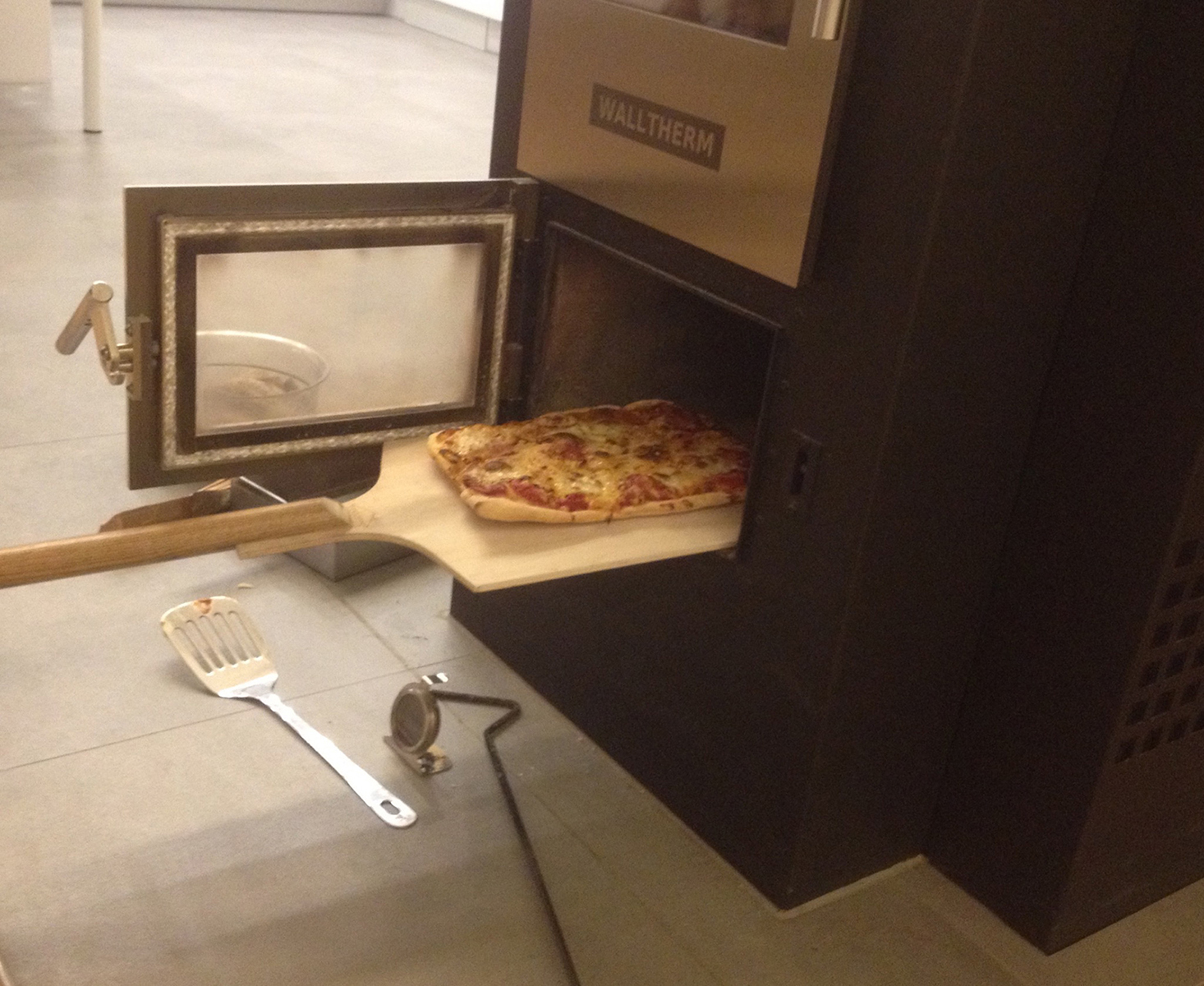 Hier wäre sicher ideal gewesen für die nächste Pizza noch mal Holz nachzulegen. Dies hätte allerdings den Nachteil gehabt, dass die Pizza im unteren Brennraum neben Käse und Salami auch mit kleinen Aschestückchen garniert würde.