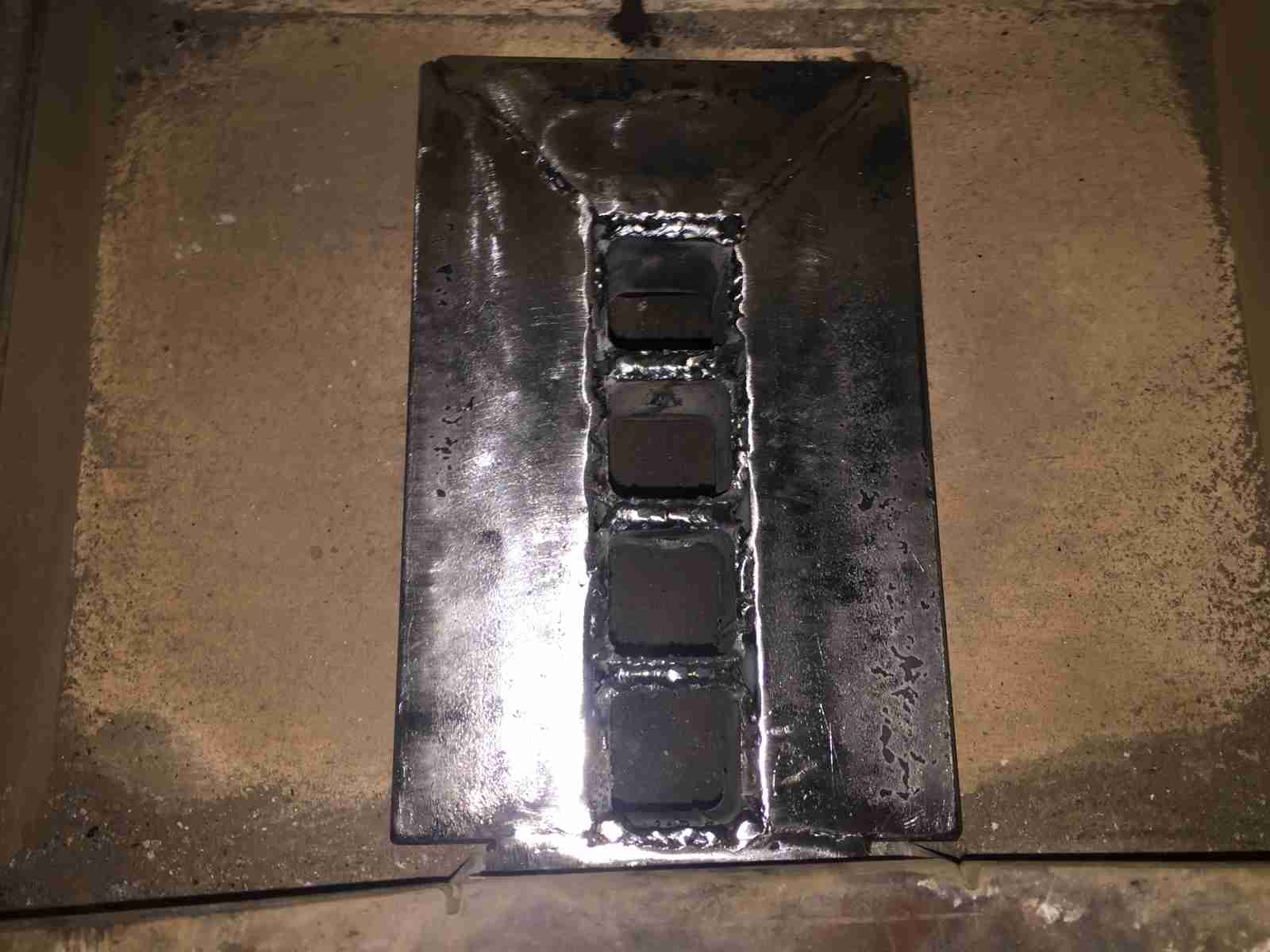 Werde wohl noch einen kleinen Rahmen aus 10x5 Flacheisen oben senkrecht drauf schweißen, damit dem Verzug nach oben noch etwas entgegengewirkt wird. Hier die Unterseite von Beiden. Alle anderen Seiten des Düsenblocks find ich klasse, vorallem die Unterseite ist Arschglatt