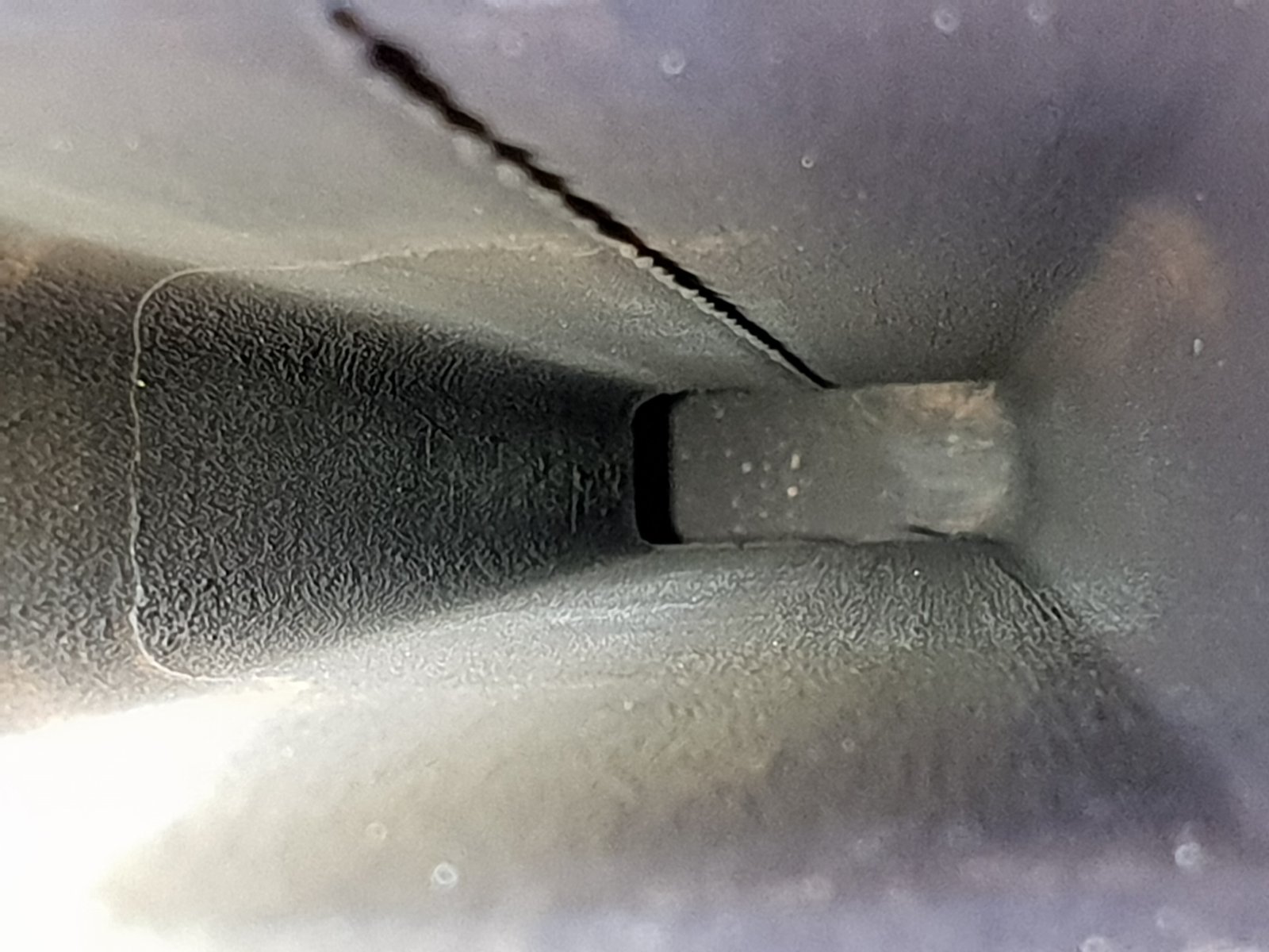Der "Riss" könnte auch Rußablagerung sein die teilweise abgeblättert ist.