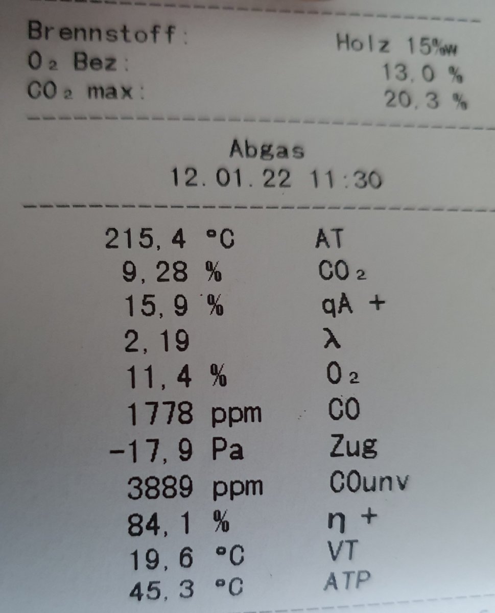 Sehe ich auch so, "eigentlich" sieht es auf den Bildern mustergültig aus. Das Einzige was mich sehr stutzig macht, ist die Vergaserflamme bei offener Brennraumtür und "offenem" Umlenkhebel, da dürfte unten überhaupt nichts los sein (außer evtl. bei brutalem hohem Zug, wenn draußen ein heftiger Sturm weht oder so. Das wäre das Erste, was ich bei einem Anruf mit Wallnöfer schildern würde, ob das überhaupt sein kann...