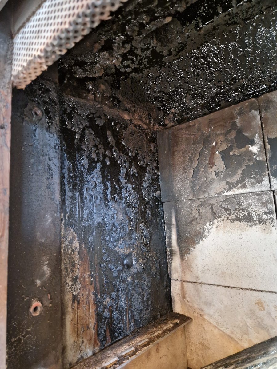 Kaum ist 1 Jahr rum, musste ich meinen oberen Brennraum mal wieder komplett enträumen weil die Aufkrustungen und der Glanzruß schon wieder die Steine von den Wänden gedrückt haben.