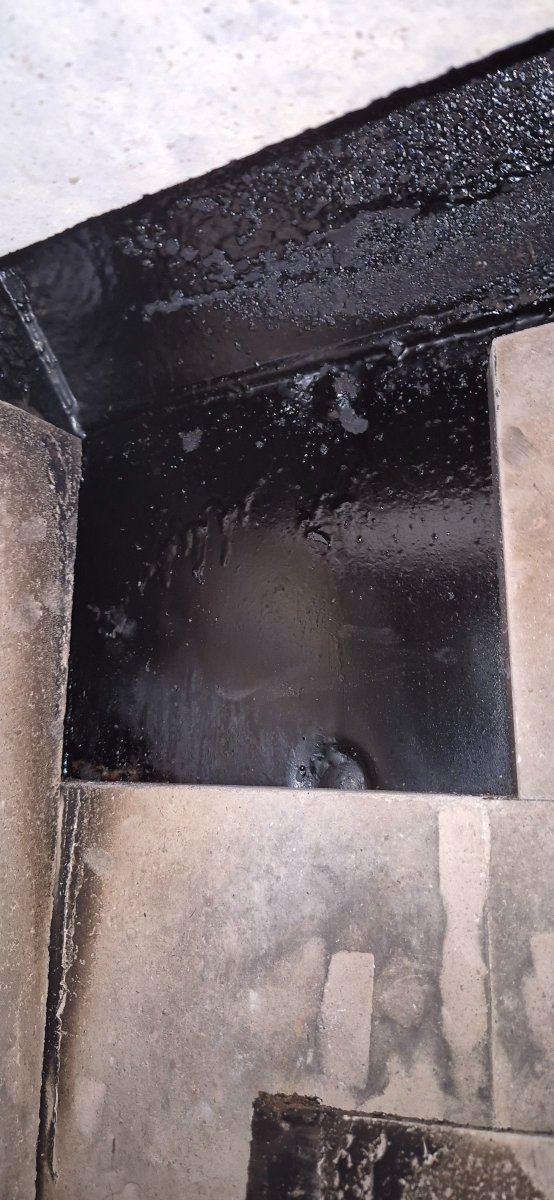 Mein nächster Versuch ist jetzt den Schmodder in den Brennraum laufen zu lassen und dort zu verbrennen - Steine abgedichtet mit feuerfester Dichtmasse und Dichtschnur (die hatte ich eh noch rumliegen). Das darf jetzt trocknen und dann mal sehn. Wollte auch erst was mit Winkeln machen wie hier beschrieben, die Dichtschnur hatte ich aber eben noch. Glaub damit bekommt mans auch besser dicht, silikonieren mit 3 Verrenkungen und ohne was zu sehn is schon schwer genug