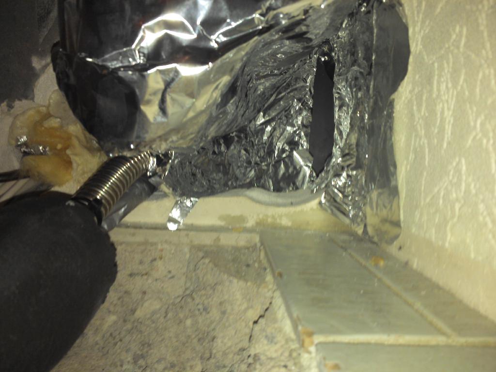 Unten rechts hab ich mit Alufolie mir einen Kanal gewurschtelt, somit nimmt er sich die Luft jetzt aus dem Flur