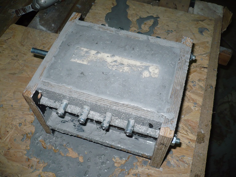Beton versuch ich den mit Stahlfasern wie weiter oben verlinkt. Als kleines Extra hab ich noch einen alten Backofen dastehen, darin kann ich den Block dann bis 300°C kontrolliert und nach Herstellervorgabe trocknen.