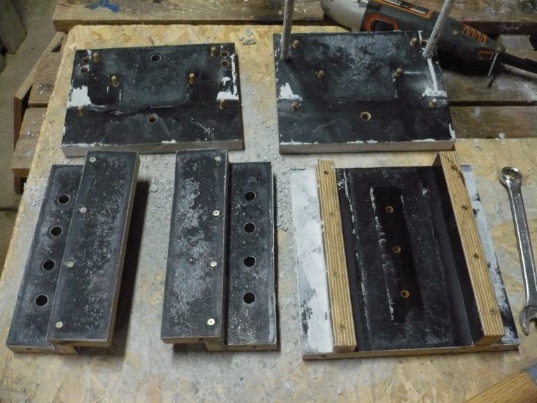 Ist aus Siebdruckresten. Die 5 Teile werden von Holzdübeln geführt und mit Gewindestangen zusammengehalten. Mehr Bilder dann beim Zerlegen.