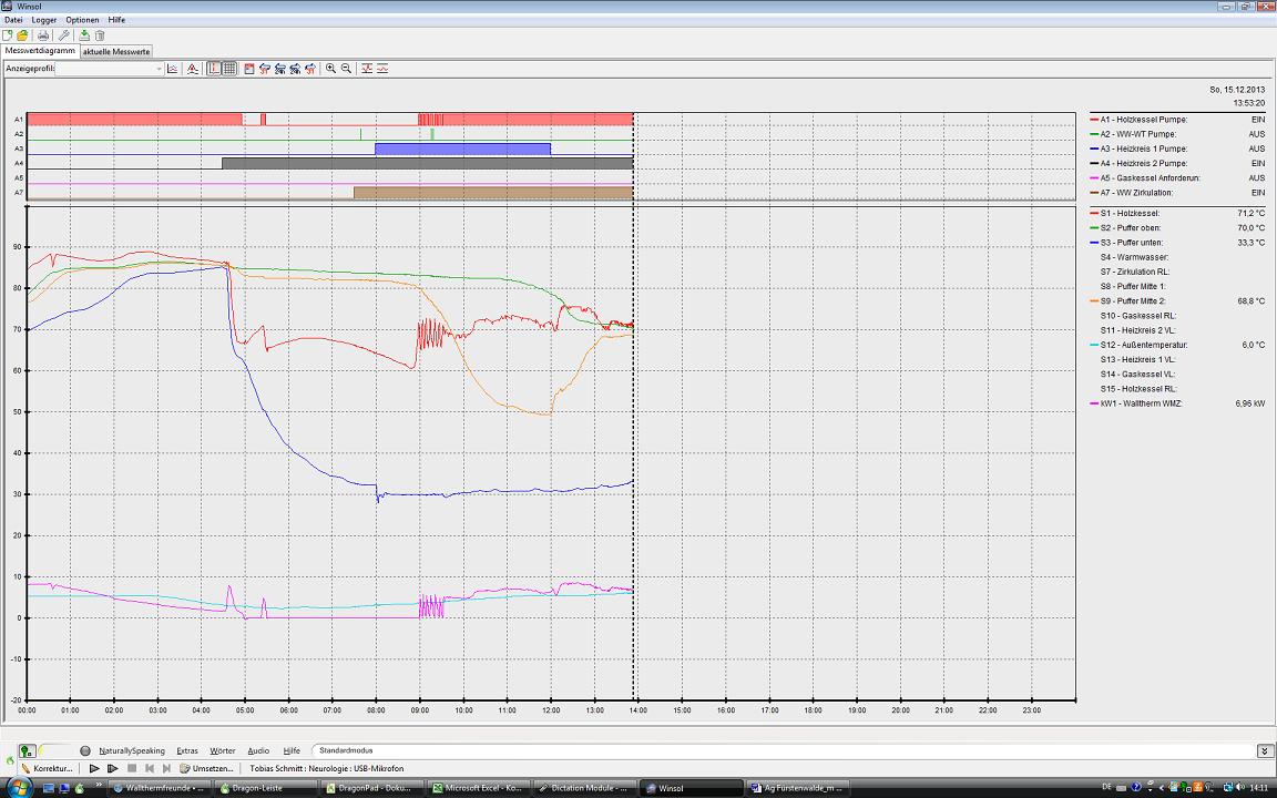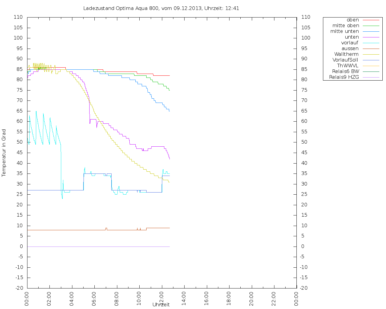 Und du zerstörst die Schichtung. Wenn der Walli wieder puffert (S1 und S9 steigen) fällt die Temperatur S2 oben am Puffer. Bei dem Temperaturniveau im Screenshot seh ich da aber noch kein Problem.