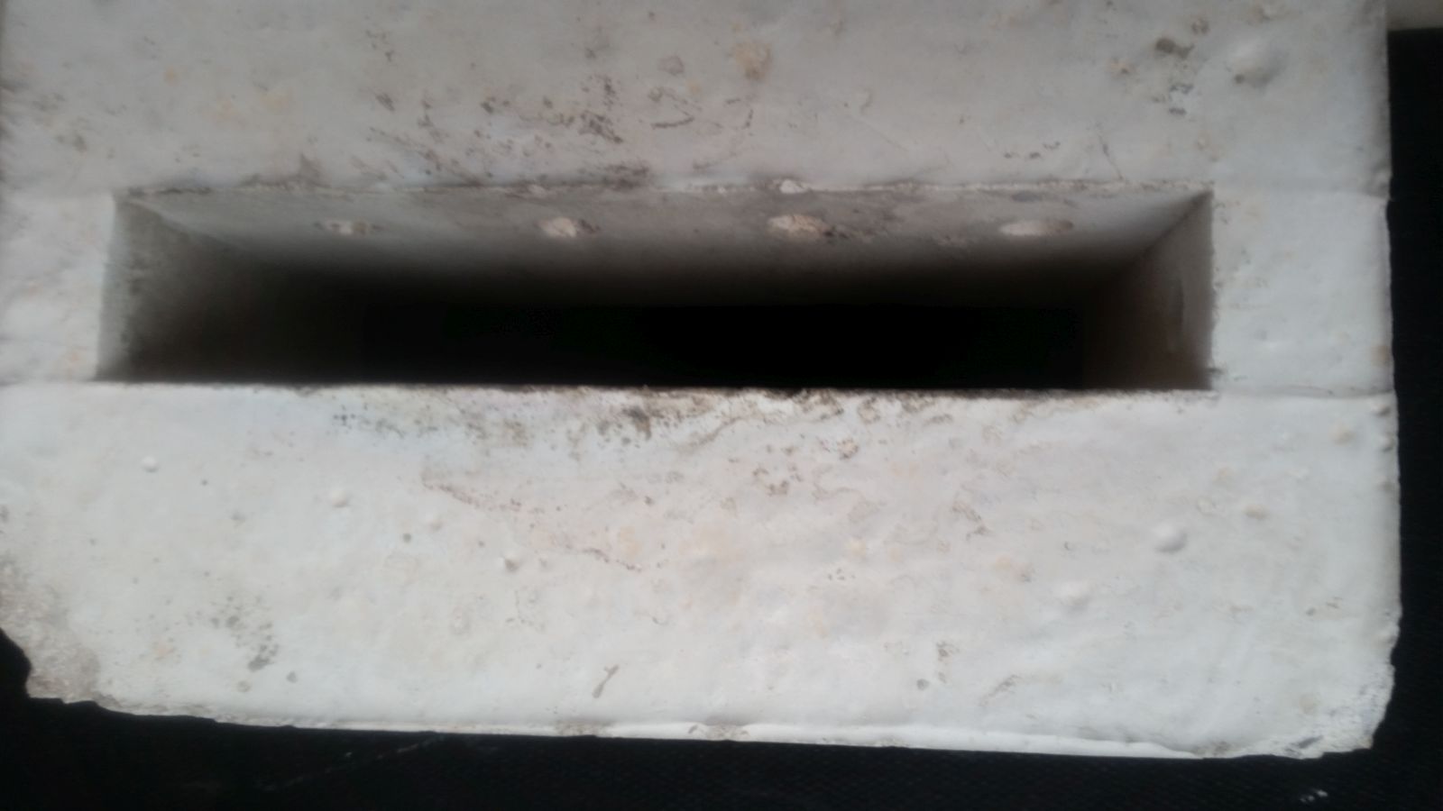 An der Unterseite hab ich die 79mm nach Zeichnung, aber der Winkel ist nicht ganz rechtwinklig geworden. Die Düse wird nach oben hin breiter und knapp >80mm breit. Jetzt klemmt sie zwischen den Schamottsteien fest.
