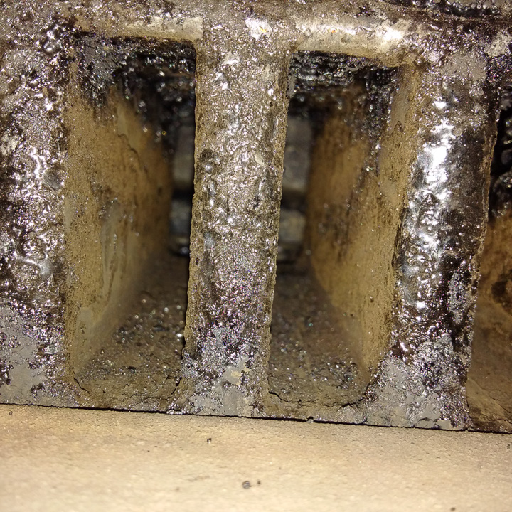Die Gussroste sind noch die Ersten? Links ist deutlich verzogen, Nebenluft kann zu schnellerem Abbrand führen.
