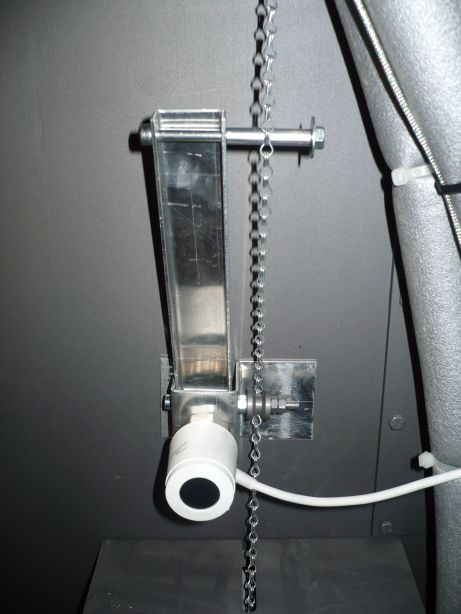 Die 180mm hab ich gewählt weil das in etwa die Mitte zwischen Zugregler und Umlenkrolle ist. Viel länger dürfte der Hebel bei mir auch nicht sein weil dann die Wasserleitung im Weg wäre.