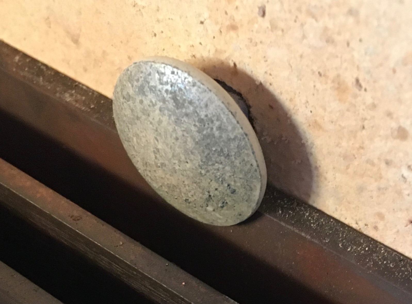 Zum Schluß noch im bereits montierten Zustand oberhalb des o. g. Bleches ein 8 mm- Loch angebohrt und außerhalb des Ofens dann durchgebohrt und ne Schloßschraube - sozusagen - als Haken montiert ...