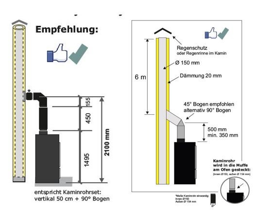 • Schornstein: wirksame Höhe=6,5m, Durchmesser=180mm